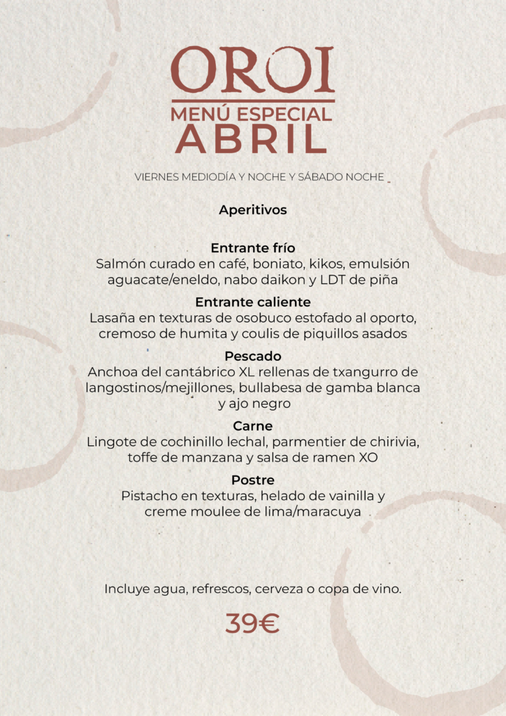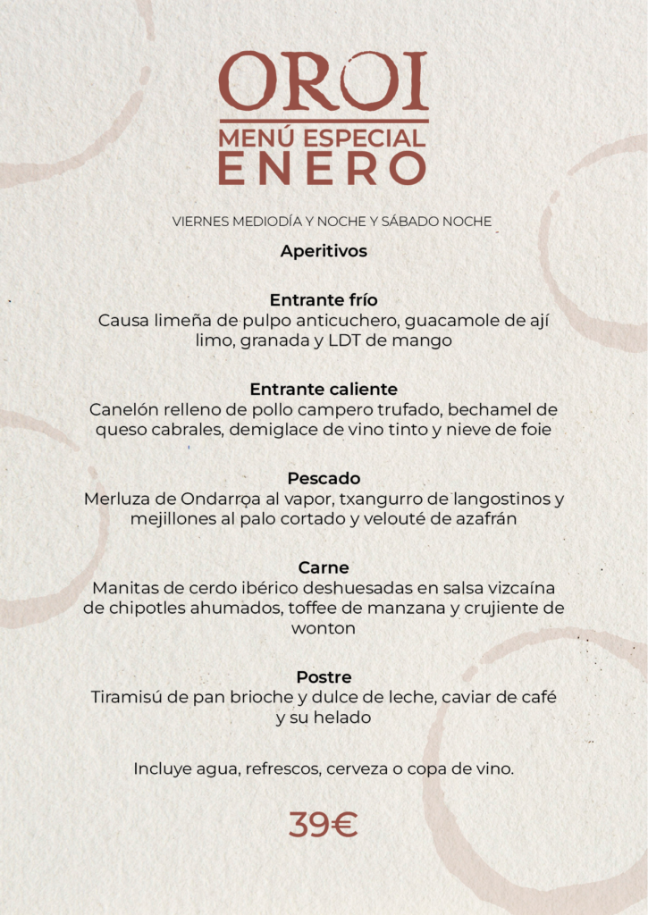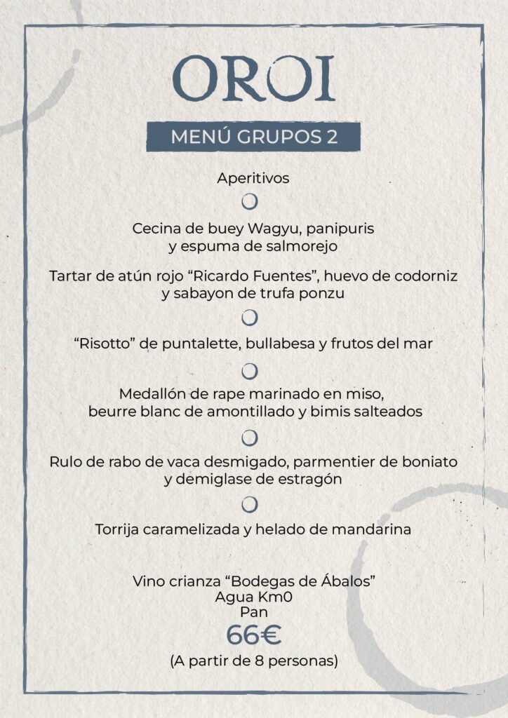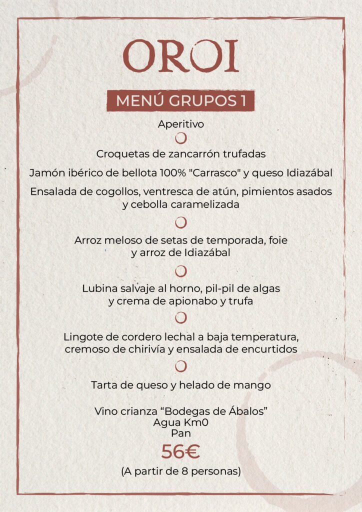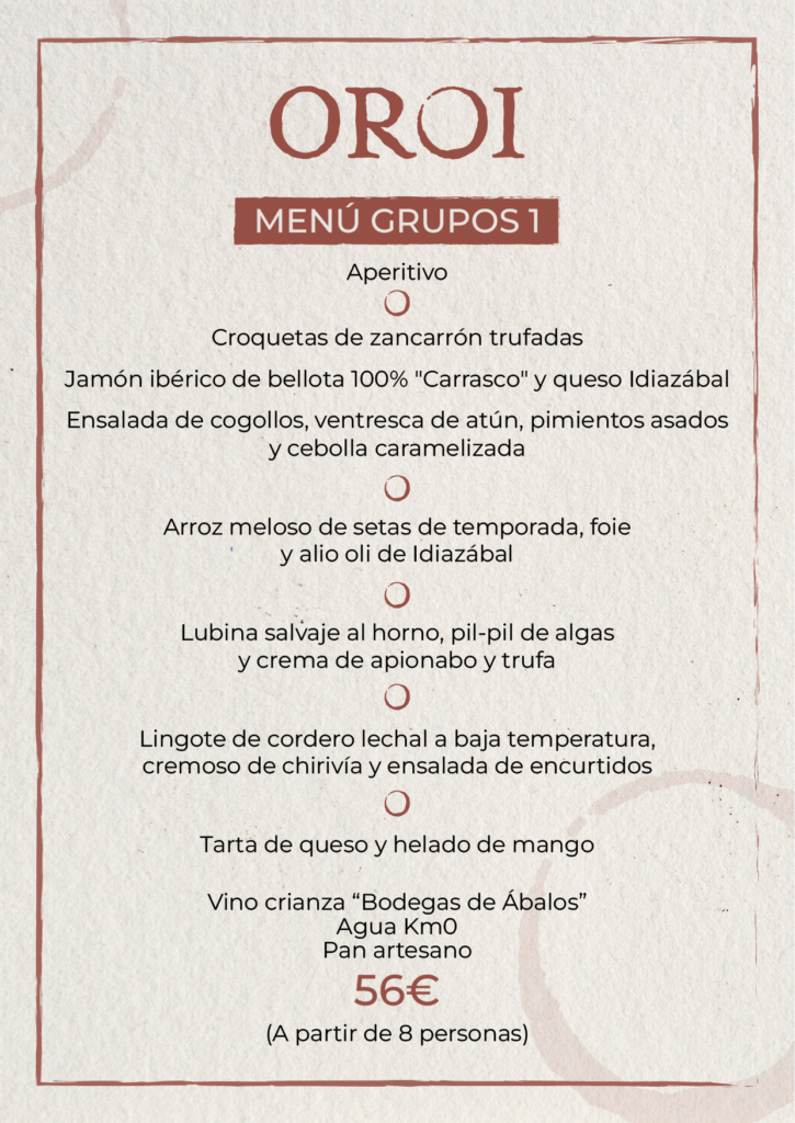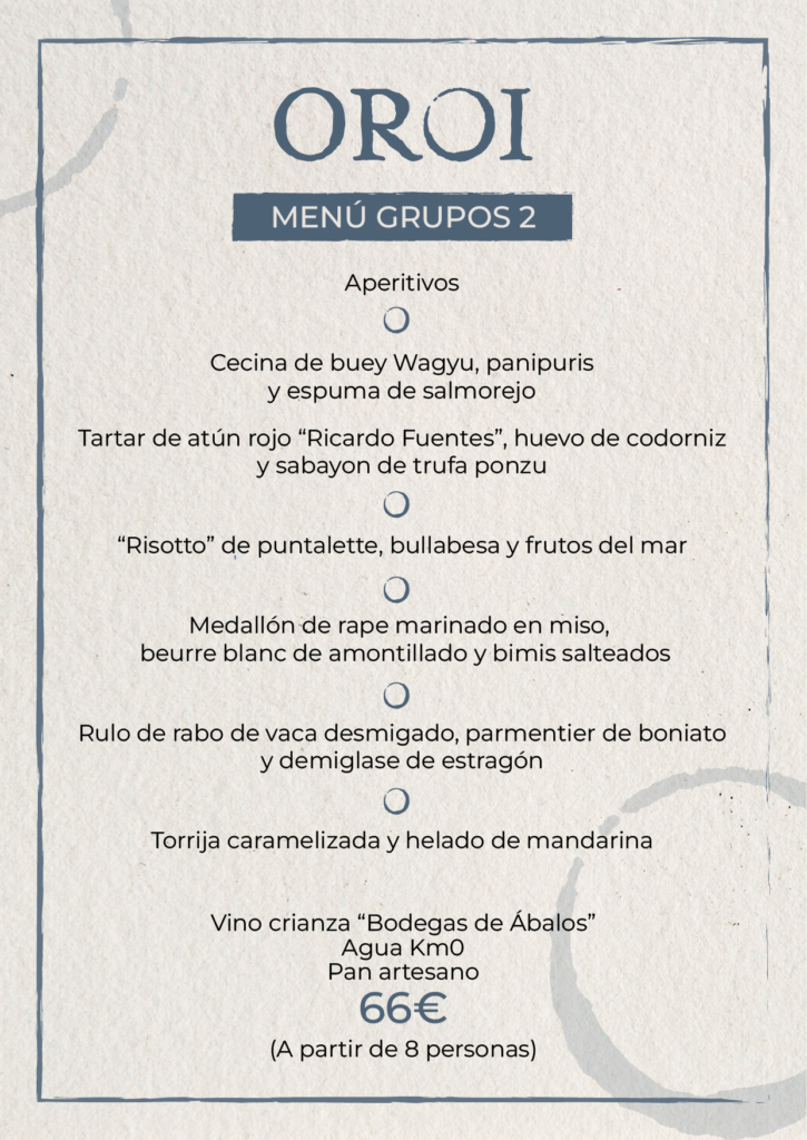 Los menús de grupo deberán ser por encargo con 48h de antelación.